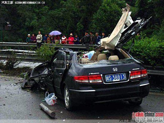 見證雅閣的所謂吸能設計,連這樣的細鐵桿也能撞成這樣,太強悍了!