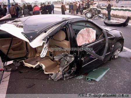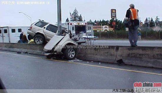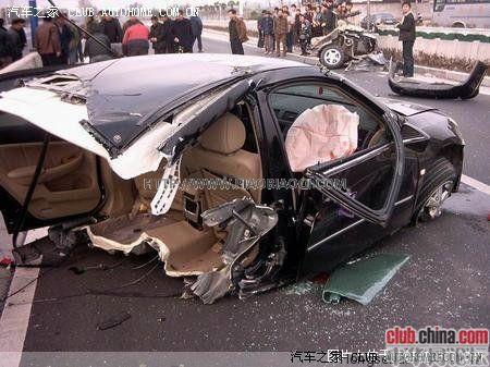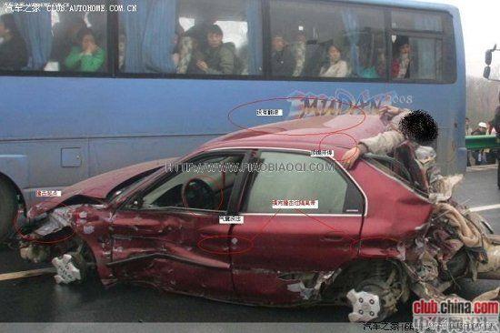 造成車禍的原因不明,但是車身斷裂的場面讓人驚嘆,因為車速看起來并不快,斷裂的車頭還藕斷絲連的在車的旁邊,從不堪入目的底盤看來,車身的剛性之差不言而喻。 至于反復出現的車禍中車身斷裂的事情,我想廠商遲早要給中國的消費者一個說法!!!