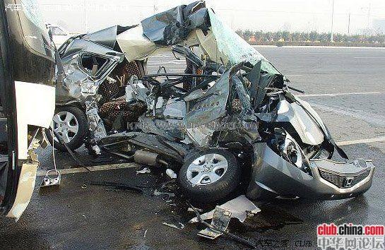 大年三十的晚上,一輛本田飛度車在山東臨沂郯城縣李莊鎮撞到了路邊的樹上了,駕駛員當場死亡! FIT車體從引擎倉與駕駛倉結合處完全斷裂!引擎倉斷裂后向右側旋轉180度!(站在車尾,可以同時看到兩尾燈及兩前燈)!駕駛坐椅隨底盤嚴重下陷! 我絕不相信,900多公斤的車能有多堅固!